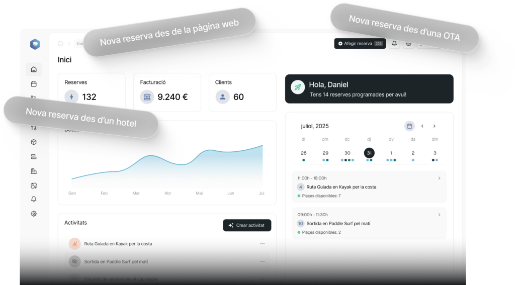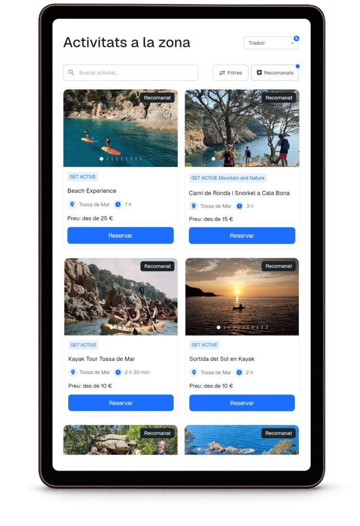 Eleva l’estada i fidelitza els teus clients, oferint un catàleg extens i personalitzat d’experiències, gestionant les reserves i controlant les comissions associades.