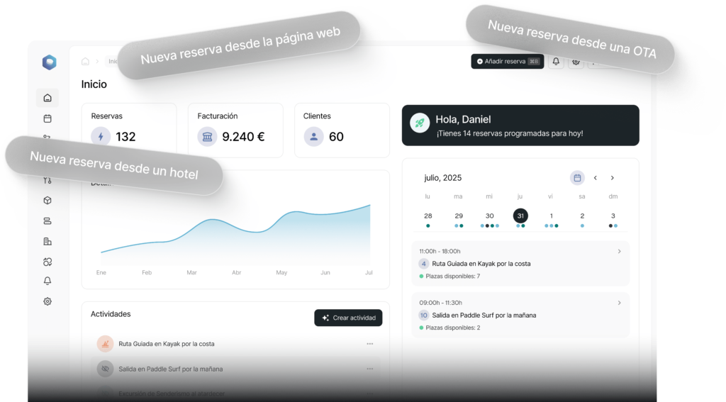 Descubre qué actividades funcionan mejor, detecta temporadas de alta demanda y entiende cómo se comportan tus clientes. Convierte los datos en decisiones inteligentes para crecer con confianza.